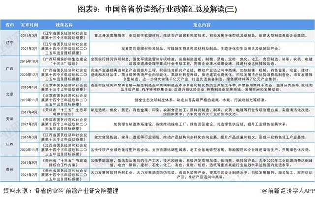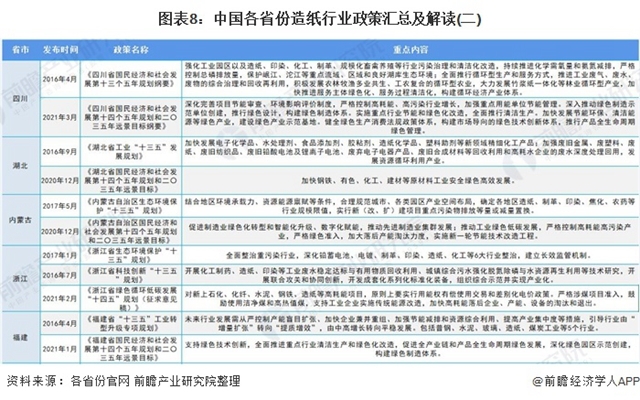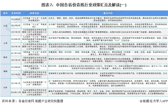根據(jù)《“十四五”規(guī)劃綱要和2035遠景目標綱要》,“十四五”期間,我國將擴大輕工、紡織等優(yōu)質(zhì)產(chǎn)品供給,加快化工、造紙等重點行業(yè)企業(yè)改造升級,完善綠色制造體系。圍繞國家“十四五”規(guī)劃,各省份均在本地“十四五”規(guī)劃中提出了推動造紙行業(yè)綠色化建設(shè)的目標: