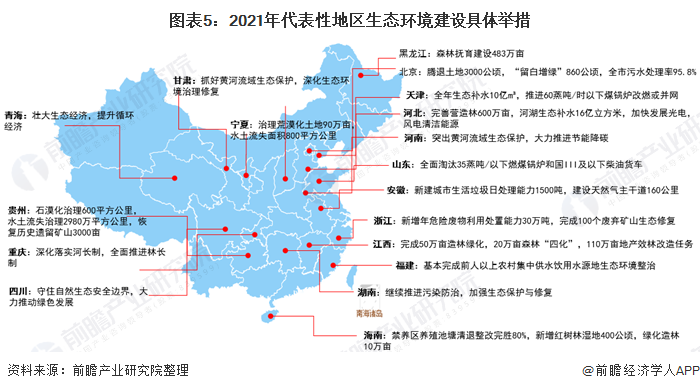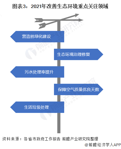 在此目標(biāo)下,我國(guó)各省市結(jié)合自身發(fā)展目標(biāo),提出營(yíng)造林綠化建設(shè)、生態(tài)環(huán)境治理修復(fù)、污水及生活垃圾處理,鞏固藍(lán)天、碧水、凈土等綠色環(huán)保目標(biāo)。