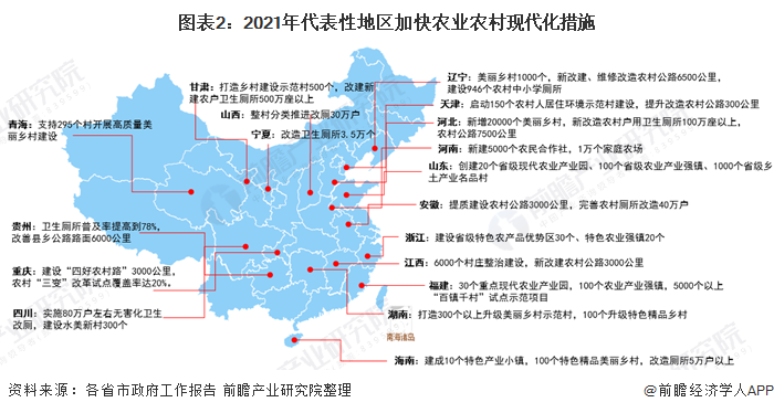 為促進(jìn)鄉(xiāng)村振興發(fā)展,各省市紛紛采取行動(dòng)加快農(nóng)業(yè)農(nóng)村現(xiàn)代化改造。具體看,主要關(guān)注農(nóng)村公路新建及改造項(xiàng)目,美麗鄉(xiāng)村建設(shè)、農(nóng)村戶用廁所改造及現(xiàn)代農(nóng)業(yè)示范園區(qū)等建設(shè)項(xiàng)目。