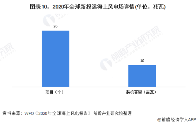 海上風(fēng)電場(chǎng)方面,截至2020年末,全球共有26個(gè)在建海上風(fēng)電場(chǎng),容量接近10吉瓦,其中,有接近44%的在建容量來自于中國。
