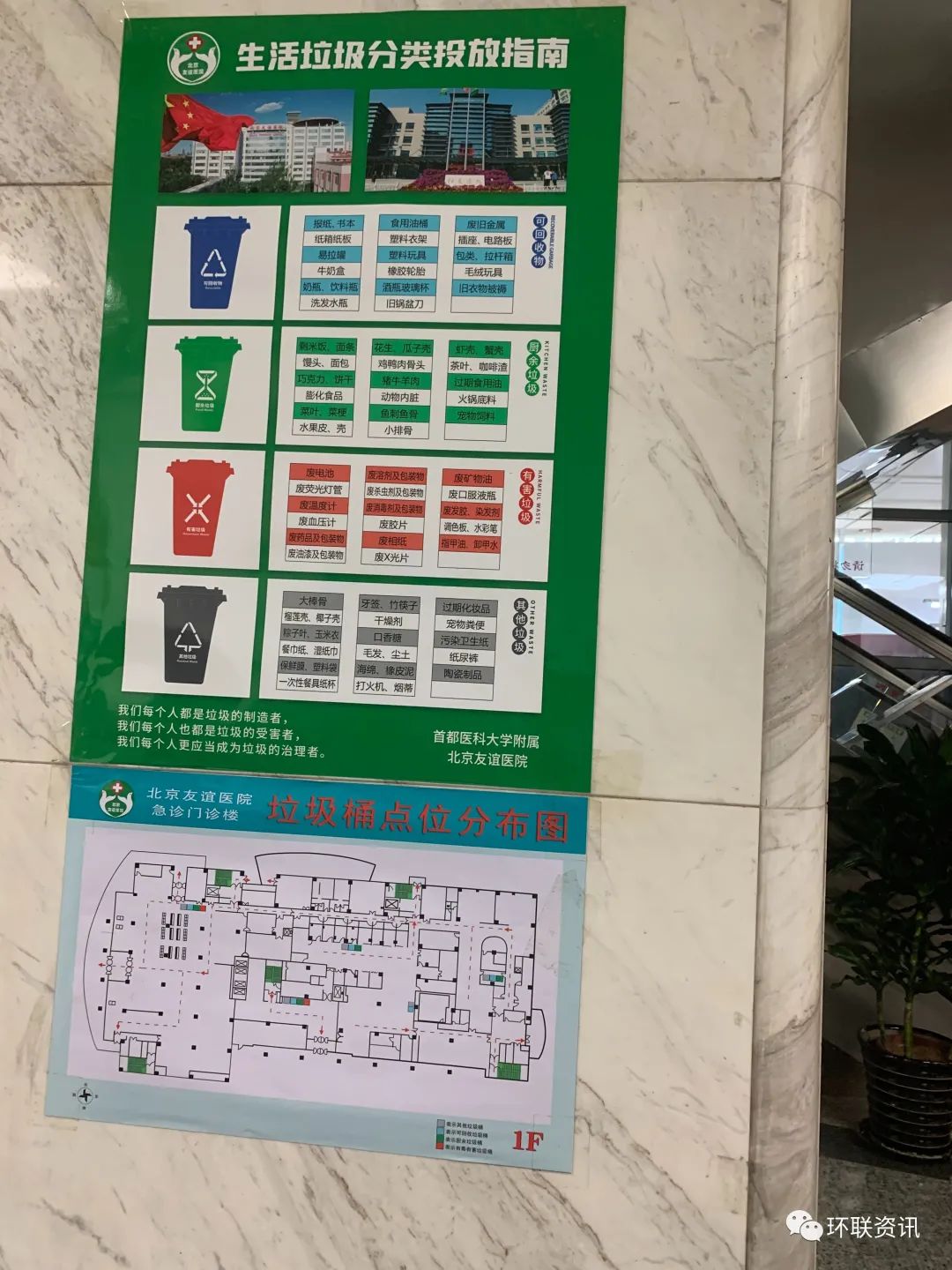 走進(jìn)友誼醫(yī)院西城院區(qū)門診樓,墻壁上張貼的《生活垃圾分類指南》和《垃圾桶點(diǎn)位分布圖》十分顯眼,電子屏幕上則滾動(dòng)播放著生活垃圾分類的宣傳片。副院長(zhǎng)李昕介紹,醫(yī)院共張貼了500多張海報(bào)、發(fā)放了20000多份宣傳片來宣傳垃圾分類的內(nèi)容。