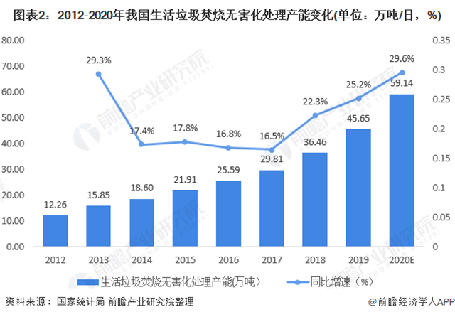 2、市場規(guī)模:垃圾焚燒產(chǎn)能持續(xù)增長,十三五規(guī)模或達兩千億