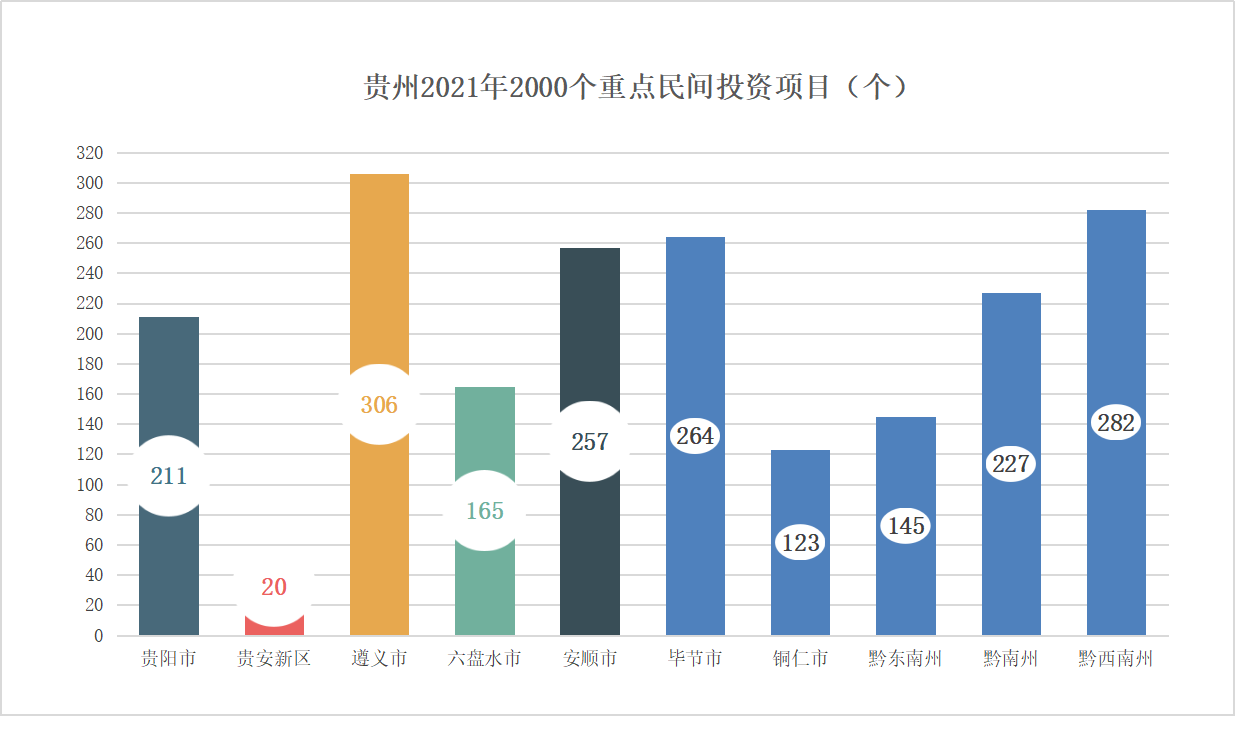 《關(guān)于大力推進(jìn)實(shí)施2021年2000個重點(diǎn)民間投資項(xiàng)目的通知》印發(fā),貴州要求扎實(shí)有效推進(jìn)民間投資重點(diǎn)項(xiàng)目實(shí)施,以旬保月,以月保季,確保完成全年投資目標(biāo)任務(wù),實(shí)現(xiàn)2021年全省民間投資占比提高到45%左右的預(yù)期目標(biāo)。 據(jù)統(tǒng)計(jì),2000個項(xiàng)目按地區(qū)分遵義市最多,達(dá)306個;按類別分,生態(tài)環(huán)保項(xiàng)目有39個...