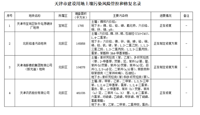 市生態(tài)環(huán)境局 市規(guī)劃資源局關(guān)于更新《天津市建設(shè)用地土壤污染風(fēng)險管控和修復(fù)名錄》的通知各區(qū)生態(tài)環(huán)境局、規(guī)劃資源分局: 為貫徹落實(shí)《中華人民共和國土壤污染防治法》、《天津市土壤污染防治條例》,加強(qiáng)我市建設(shè)用地土壤環(huán)境管理,實(shí)行建設(shè)用地土壤污染風(fēng)險管控和修復(fù)名錄制度,根據(jù)我市建設(shè)用地地塊風(fēng)險評估和治理修復(fù)...