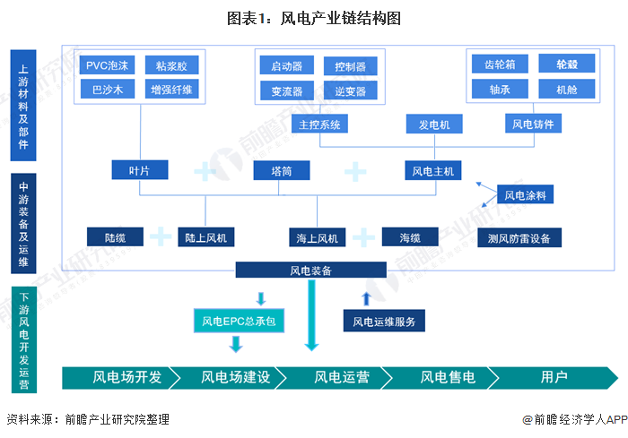 風(fēng)電產(chǎn)業(yè)鏈分為上游材料及零部件、中游風(fēng)機(jī)整機(jī)及運(yùn)維、下游風(fēng)電開發(fā)運(yùn)營。上游風(fēng)機(jī)部件中的葉片是產(chǎn)業(yè)鏈中供應(yīng)最緊張的環(huán)節(jié),風(fēng)電葉片的關(guān)鍵材料巴沙木和PVC泡沫依賴進(jìn)口。目前,風(fēng)電產(chǎn)業(yè)鏈代表企業(yè)主要集中在江蘇、北京、上海、山東等地區(qū),其中,江蘇風(fēng)電產(chǎn)業(yè)發(fā)展領(lǐng)先。 風(fēng)電產(chǎn)業(yè)鏈全景梳理:核心原材料供應(yīng)緊張 風(fēng)...