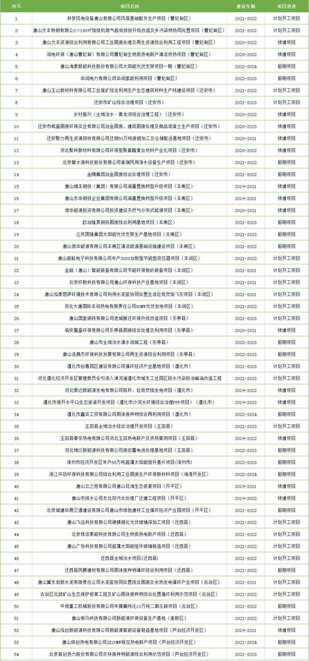 唐山市2021年重點(diǎn)建設(shè)項(xiàng)目計(jì)劃公布,全市共安排市重點(diǎn)項(xiàng)目460項(xiàng),總投資8057.5億元,當(dāng)年計(jì)劃投資1800.1億元。 其中,環(huán)保相關(guān)項(xiàng)目整理如下: 續(xù)建項(xiàng)目有16個: 1、唐山文豐資源綜合利用有限公司工業(yè)固廢處理及再生資源綜合利用工程項(xiàng)目(曹妃甸區(qū)) 2、潤電環(huán)保(唐山曹妃甸)有限公司曹妃甸生...