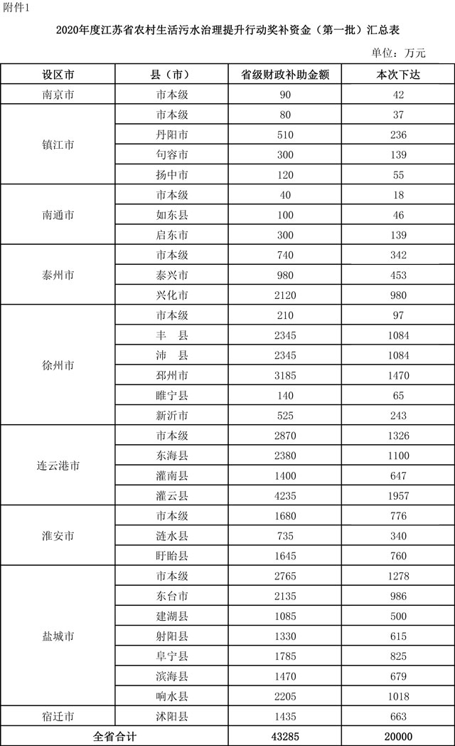 江蘇省財政廳剛剛發(fā)布了《關(guān)于下達2020年度全省農(nóng)村生活污水治理提升行動獎補資金(第一批)的通知》。 本批共下達資金2億元,要求加快行政村污水治理設(shè)施建設(shè),抓緊制定農(nóng)村生活污水治理年度工作計劃;確保農(nóng)村生活污水處理設(shè)施“建成一個、運行一個、見效一個”;各地及時撥付省補資金,建...