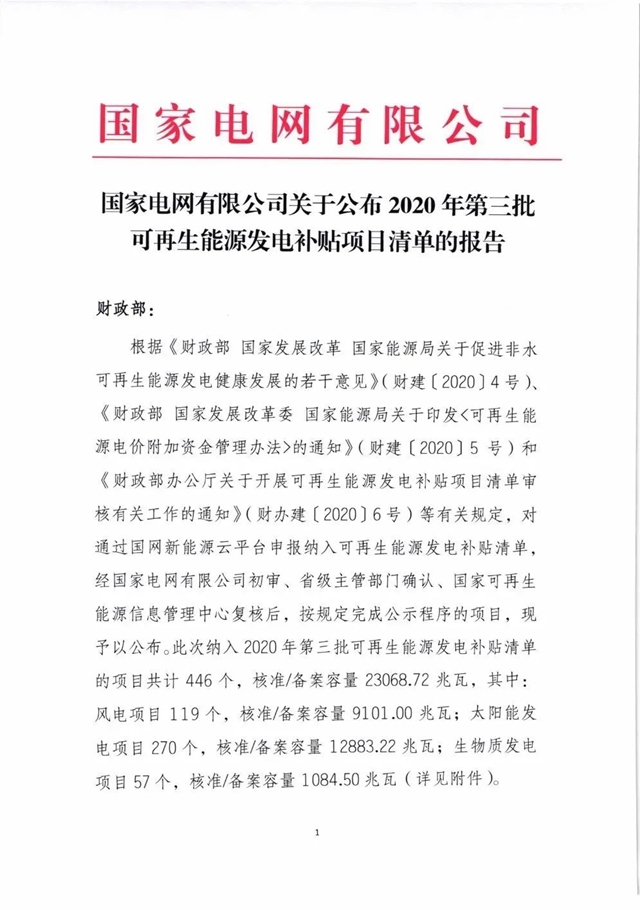國家電網(wǎng)發(fā)布2020年第三批可再生能源發(fā)電補貼項目清單,其中納入補貼清單的生物質(zhì)能發(fā)電項目共計57個,詳情如下: 根據(jù)《財政部 國家發(fā)展改革委 國家能源局關(guān)于促進非水可再生能源發(fā)電健康發(fā)展的若干意見》(財建〔2020〕4號)、《財政部 國家發(fā)展改革委 國家能源局關(guān)于印發(fā)<可再生能源電價附加資金...