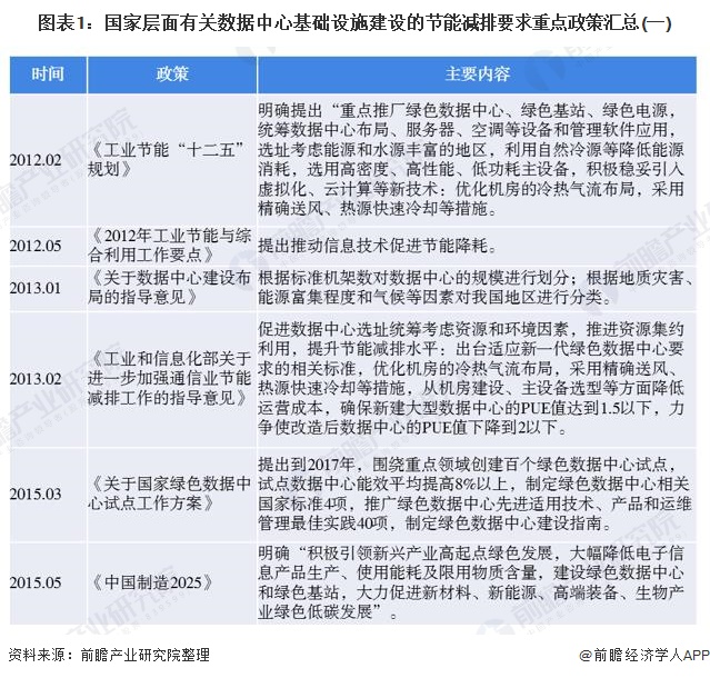 隨著數(shù)據(jù)中心的建設(shè)在全國逐年開展起來,我國對數(shù)據(jù)中心的建設(shè)提出了節(jié)能環(huán)保的要求與規(guī)劃,在《關(guān)于加強(qiáng)綠色數(shù)據(jù)中心建設(shè)的指導(dǎo)意見》中明確提出到2022年,我國數(shù)據(jù)中心平均能耗基本達(dá)到國際先進(jìn)水平。地方政府也紛紛對數(shù)據(jù)中心能耗問題作出了相應(yīng)的要求,如北京和上海提出了建設(shè)數(shù)據(jù)中心建設(shè)PUE值的規(guī)定。 國家對...