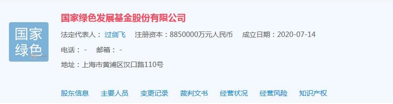 天眼查數(shù)據(jù)顯示,7月14日,國(guó)家綠色發(fā)展基金股份有限公司成立,注冊(cè)地址為上海市黃浦區(qū)漢口路110號(hào),注冊(cè)資本885億人民幣,法定代表人為過(guò)劍飛,公司經(jīng)營(yíng)范圍包括一般項(xiàng)目:股權(quán)投資,項(xiàng)目投資,投資管理,投資咨詢,(除依法須經(jīng)批準(zhǔn)的項(xiàng)目外,憑營(yíng)業(yè)執(zhí)照依法自主開(kāi)展經(jīng)營(yíng)活動(dòng))等?!鴣?lái)源企查查 天眼查數(shù)據(jù)顯示...