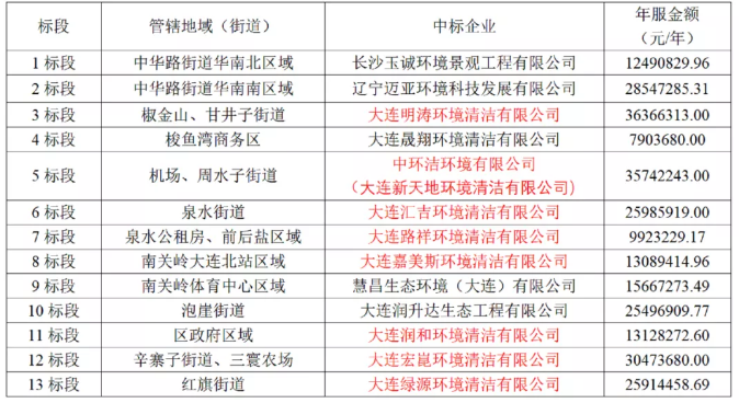 大連市甘井子區(qū)環(huán)境衛(wèi)生作業(yè)服務(wù)項(xiàng)目中標(biāo)結(jié)果發(fā)布,年服務(wù)金額約2.8億元/年,六年期合同額近17億元,其中,中環(huán)潔環(huán)境有限公司(以下簡稱“中環(huán)潔”)等8家企業(yè)再次中標(biāo)。 大連市市場化環(huán)衛(wèi)項(xiàng)目中標(biāo)主體超96%為大連市本地企業(yè) E20研究院數(shù)據(jù)中心環(huán)衛(wèi)庫顯示,此項(xiàng)目為大連市甘井子區(qū)...